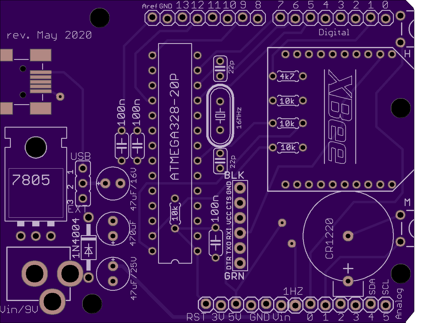 - moved the 1Hz output to a pin between the banks of analog and power pins;