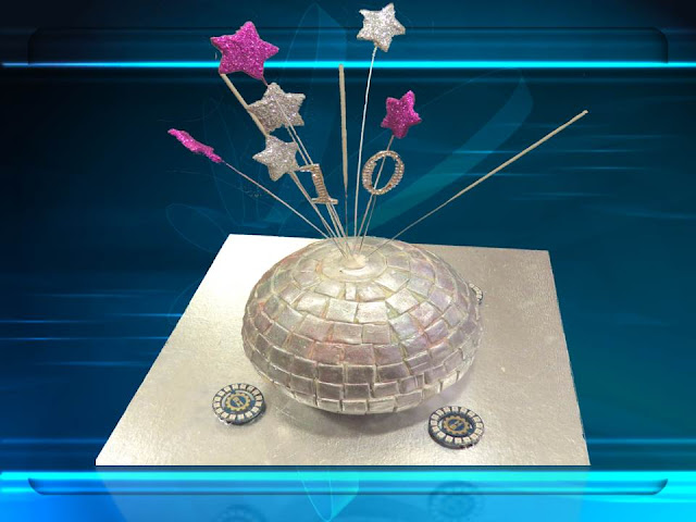 You will also need a Disco Ball Cake which you will have to make(or buy).My wife made this one. And as you will see shortly, the cake on the inside was Pink, because it was a strawberry cake.