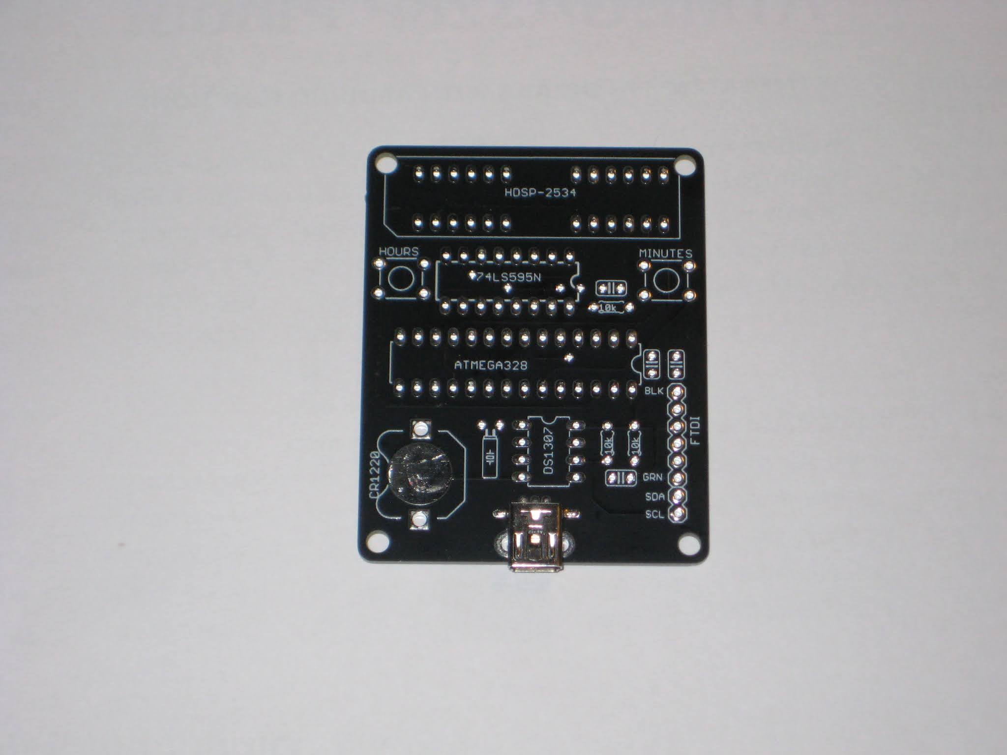 Hardware-wise, some re-wiring is required on the HDSP board, starting with the removal of the 595 shift register. Then, D3, D4 and D5 (ATmega328 pins 5, 6, 11) must be connected respectively to SDCLK, LOAD and DATA pins (1, 2, 27) of the SCD5583 display.