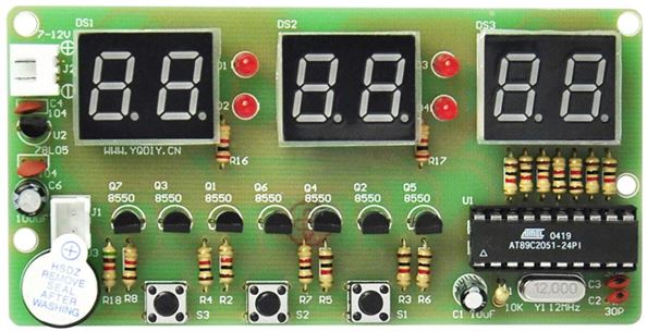 provides extra learning (besides soldering) by displaying information: wave forms, frequencies, binary/hex number representation, musical notes, proverbs etc.