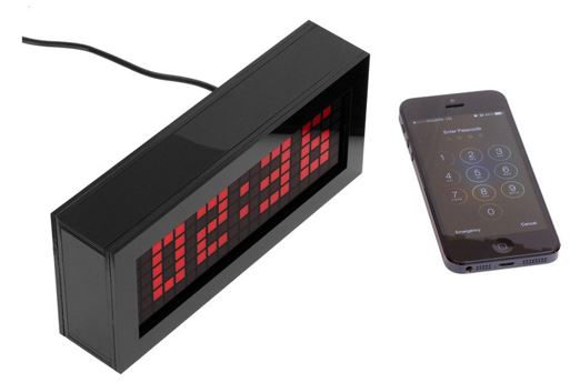 Compared to the HDSP-2534 LED display, the characters in the VFD module are about 50% bigger, and much brighter, making it readable from a greater distance. The current consumption is in the range 100-200mA, versus about 20mA taken by the HDSP display.