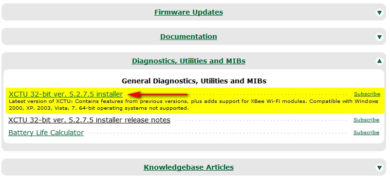 - Download and install the XCTU 32-bit ver 5.2.7.5 installer (do a virus check after download)