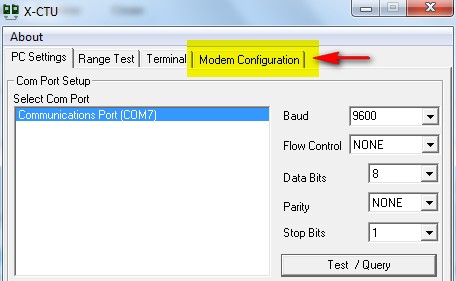 - Press the Test / Query button to see if the computer can talk to the XBee module.